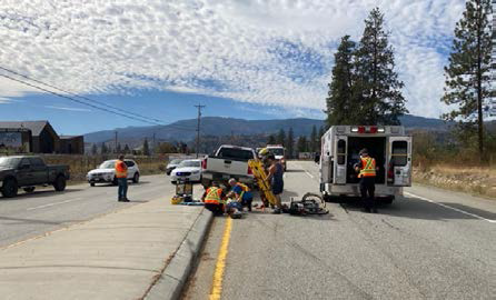 ODN confused – again !! September 22, 2021 photo supplied by RCMP 12:35pm Tuesday Vehicle vs cyclist – cause of closure at Hwy 97 and south of James Way near Gallagher Lake for almost an hour No listing on Drive BC Police fire and ambulance attended but have cleared the scene. Traffic resumed at 1:25 pm