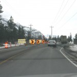 Hwy 97 north of Gallagher Lake slowing down, diverting, with traffic now moving around area where new box culvert will be installed for “ditch” – once that is done highway widening and passing lanes can be installed.