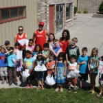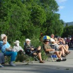 Bright sun, squinty eyes, photograph taken from a ladder Friday – participants having fun with egg rockets.