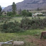 More victims to progress. When taking the pictures the smell of pine was everywhere. Opening the fence and taking out the trees will allow for a show home and selling centre for the condo units being proposed at the old “Cherry Grove” end of the Canyon Desert Resort area on 71st/Boundary Rd/Tuc-el-nuit Drive.