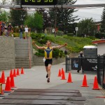 Photo by Russell Work Winner Jeff Symonds of Penticton – Total time 1:55:32 Time on the board indicates elaspsed time since first race started and does not indicate racer’s time. 79 participants in the Olympic event